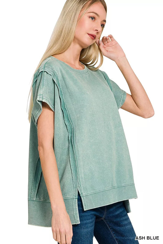 Zenana French Terry Collared Exposed Seam Sweatshirt